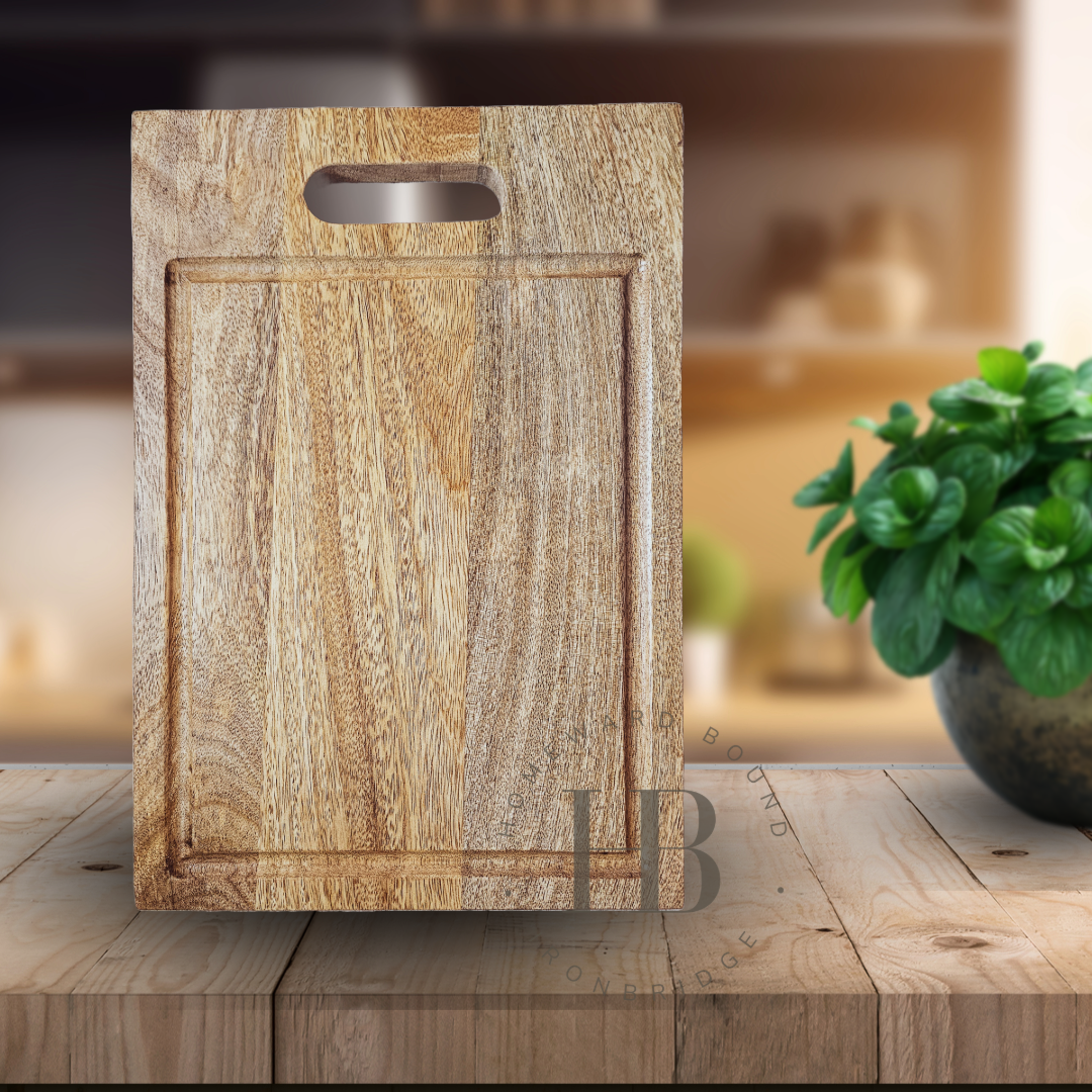 Made of solid mango wood, this chunky carving board features a routed channel, making it perfect for carving a small joint or bird, but also makes a stunning steak presentation board which doubles up as both a serving board and 'platter', from the skillet, straight to the table!