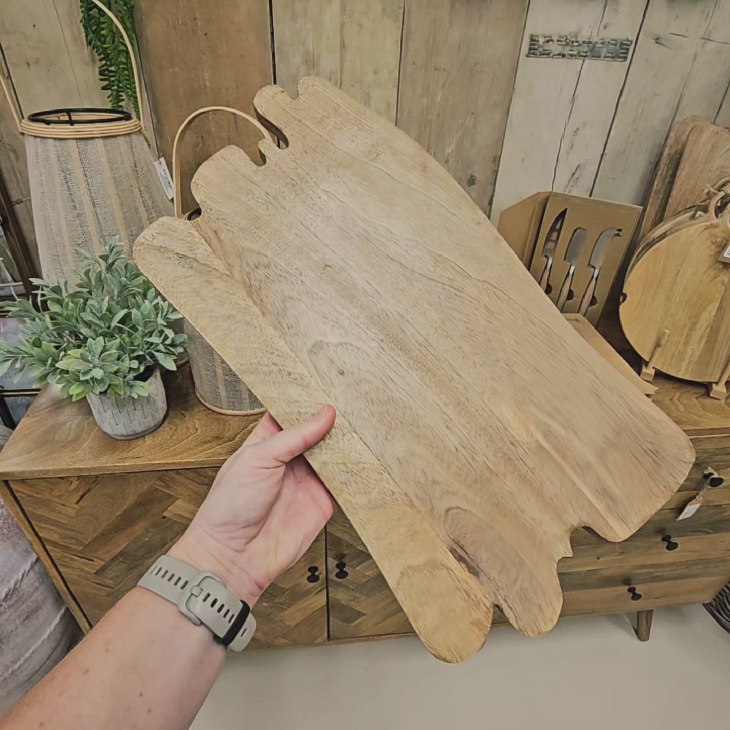 This asymmetrical board is ideal for popping on the sideboard or dining table to give a little height to your displays.