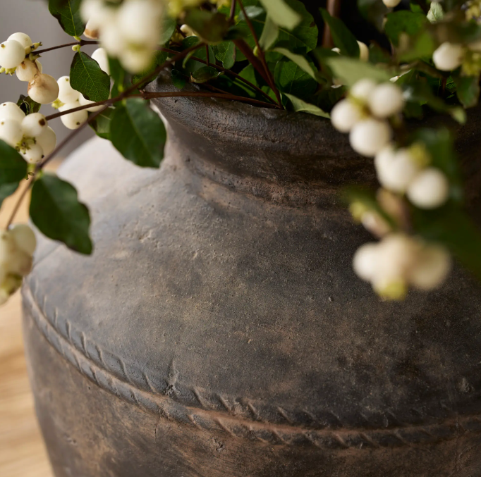 Displaying a beautiful posy of flowers or sitting on a tabletop, bookshelf or windowsill by itself, our rustic Portesham Vase is an artistic addition to any home. A stitching pattern around the neck and shoulder of the vase adds a decorative touch to this Antique Brown vase, the dark colour of which provides a plain backdrop to enhance the bright colours of the flowers you put in it.