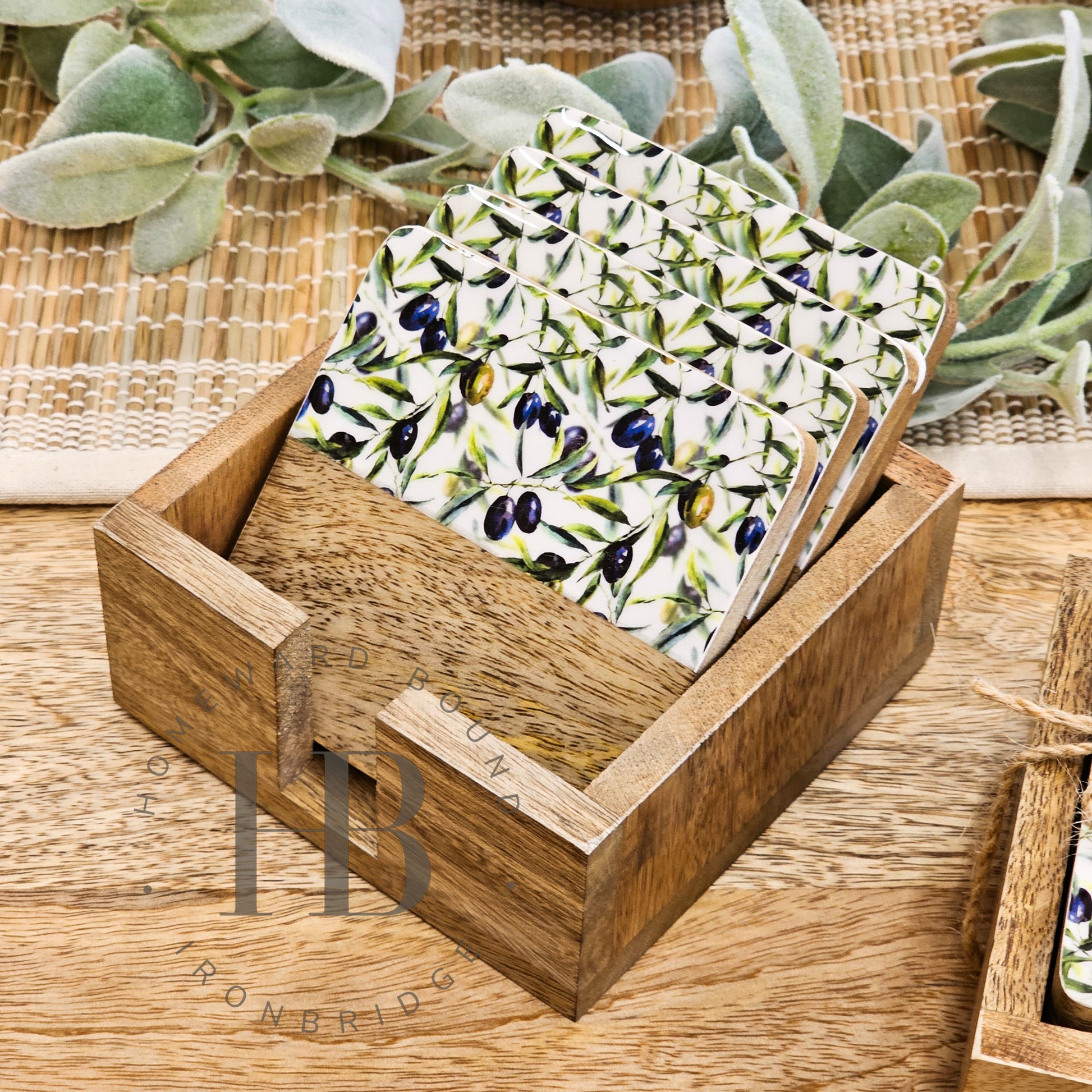 These lovely little coaster sets come with a solid mango wood holder to keep them neatly stored when not in use.